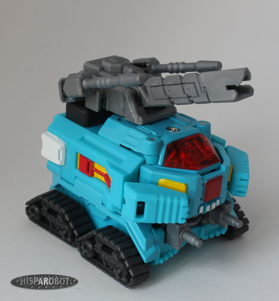 La transformación es probablemente la mejor de todas las figuras que han lanzado hasta ahora. Han procurado que no quede nada del modo robot visible en el modo tanque y el resultado es perfecto.